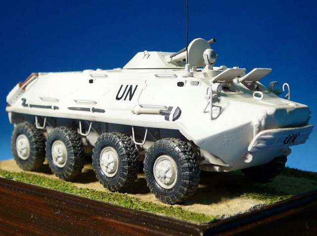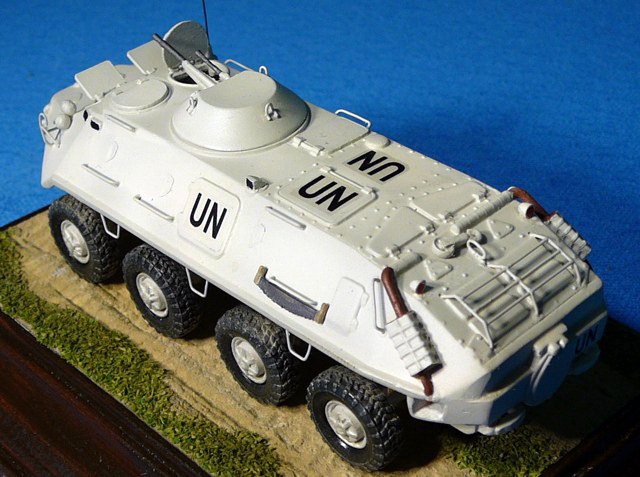 Model představuje vozidlo nasazené v roce 1994 ve Rwandě. |